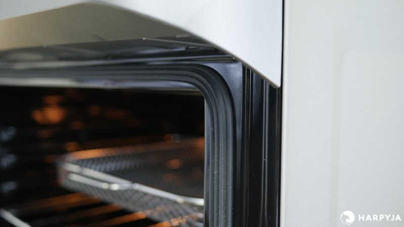 Quando fazendo alimentos gordurosos, os respingos aparecem em todas as partes, inclusive nos encontros da porta com o vidro. Um ponto positivo é que o vidro interno pode ser removido com facilidade, tirando dois parafusos e assim feita a limpeza dessas frestas. Assim mesmo, há alguns pontos de acúmulo na porta que o acesso é limitado.