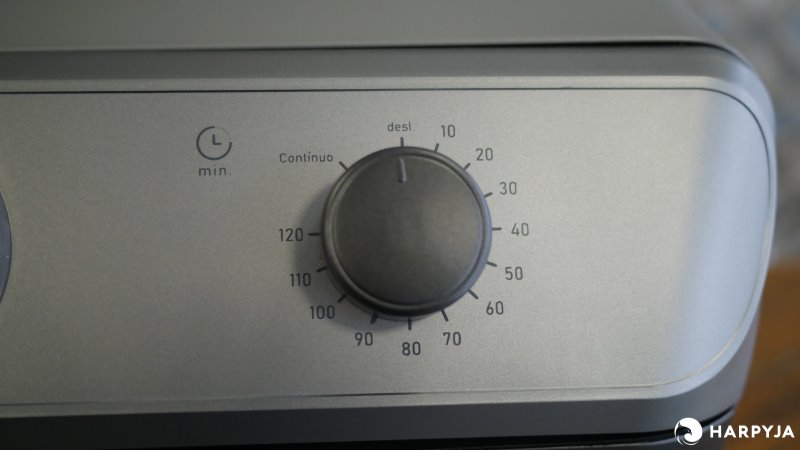 Fora as funções, há um seletor de tempo que pode ir até 120 minutos ou ser colocado em modo contínuo. Nessa situação o usuário decide quando o forno deve desligar, rotacionando o seletor de volta para a posição “desligado”.