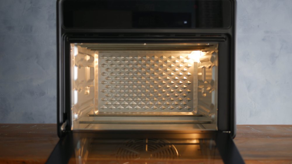 Algo parecido pode ser dito do nível de cima, que dificilmente será utilizado a não ser para dourar alimentos ou em temperaturas baixas (como na função Desidratar). Isso deixa o posicionamento limitado, apesar das opções.