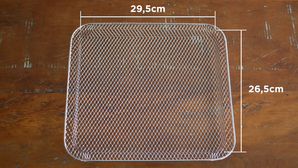 Este cesto pode parecer pequeno, com pouco menos de 1,6 litro, porém seu real benefício é a área larga que cobre. O interior tem 29,5 centímetros de largura e 26,5 cm de comprimento. Vai ser suficiente para espalhar bastante comida.