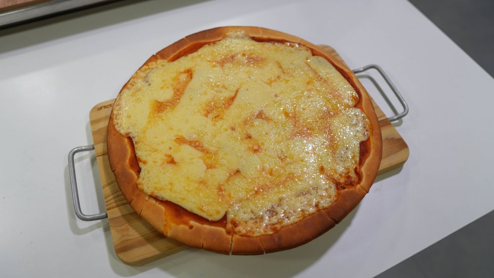 Com este processo já feito, o preparo de pizzas seguiu muito bem. Foi utilizada uma massa pré-assada, que permaneceu no forno por só 5 minutos. Com esse tempo o queijo derreteu por completo e a massa pegou uma cor ótima.
