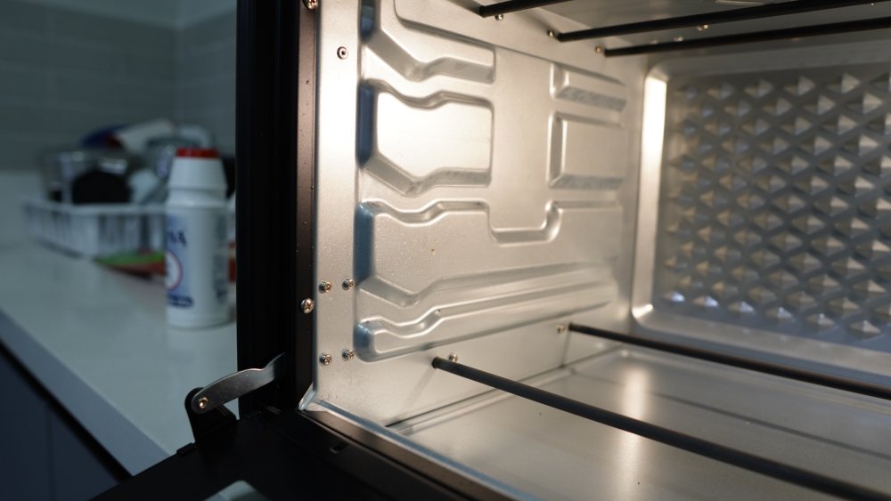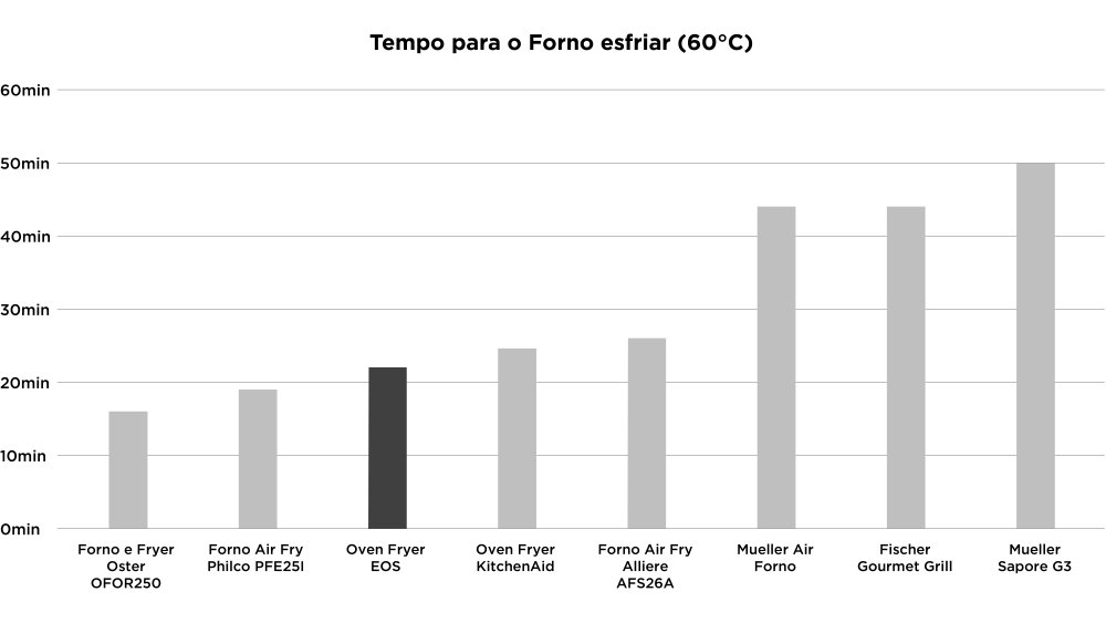 Outro tropeço da falta de isolamento térmico é a contenção de temperatura. Em cerca de 22 minutos o interior do forno já estará frio, próximo de 60°C. Se for deixar algum alimento no interior, é melhor usar o Manter Aquecido se desejar que fique quente.