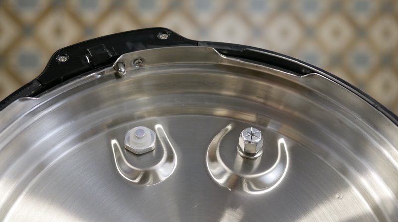 Ao abrir a tampa é comum acumular líquido entre o topo e a tampa interna. Para evitar de pingar para fora da panela, assim que a tampa é aberta vale segurar a peça em ângulo para escoar toda a água acumulada no topo.