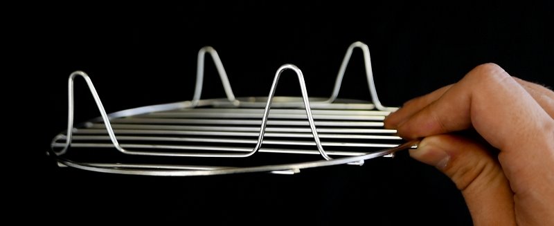 Um acessório inesperado que veio com a panela é uma grade que fica em torno de 1 litro de altura para de repente fazer alimentos no vapor ou esterilizar objetos. Não há detalhes no manual a respeito, mas como o nível mínimo declarado no manual é uma xícara, nada impede de usar a grelha para isso.