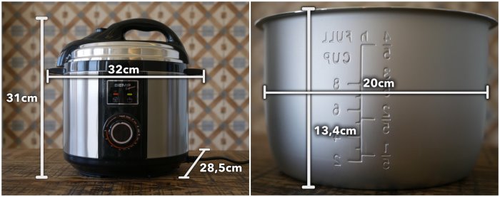 O desenho é genérico como muitas panelas de pressão elétricas do mercado. A estrutura é muito parecida com a panela de pressão Agratto, testada recentemente.