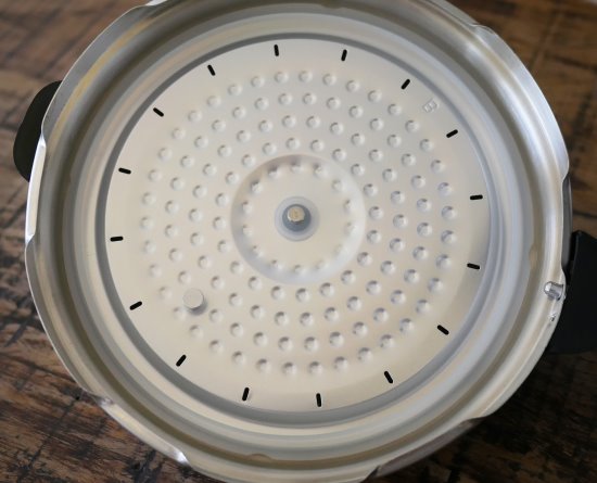 Assim que a temperatura passa de 95°C, a panela começa a fazer barulho através da válvula de pressão. Mesmo colocando na posição para não perder água e não fazer barulho, a panela tem uma leve perda de água e um leve barulho de vapor constantemente. Não é alto como uma panela de pressão tradicional, mas ainda assim é algo presente e audível.