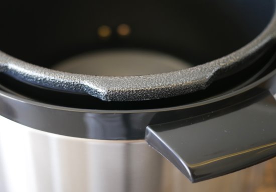 As bordas entre a panela e a área externa são os pontos mais difíceis de acessar para limpar. Apesar disso, há uma fresta grande o bastante para passar um pano ou uma escova no vão.