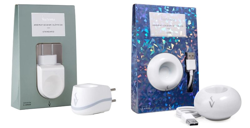 O aromatizador também vaporiza óleos essenciais, mas seu princípio é diferente. Normalmente são pequenas bandejas cerâmicas que quando aquecidas fazem óleo evaporar. Uma marca forte desse tipo de aromatizador é a Via Aroma que vende a peça para a tomada ou para ligar em USB.