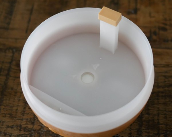 A tampa é somente encaixada, prática de abrir. O reservatório é grande para um difusor, com espaço para 400 mililítros. Isso é água o bastante para o difusor trabalhar sem parar por quase 24 horas. Como há dois níveis de intensidade, usando a intensidade mínima este Blitzwolf consegue funcionar continuamente por mais de 27 horas contínuas.