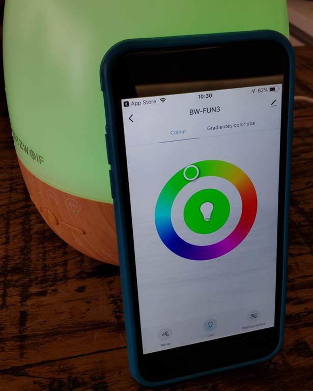 A Blitzwolf possui uma infinidade de produtos e através de seu aplicativo é possível controlar todos eles. Baixando o aplicativo, via Apple Store ou Google Play, basta achar o difusor na lista de produtos e colocar o difusor em modo de comunicação (segurando os botões de luz e difusor por alguns segundos).