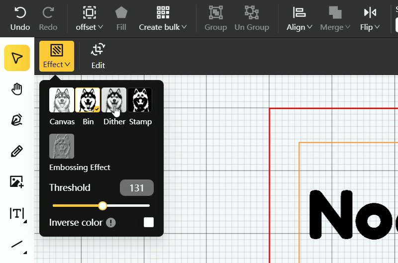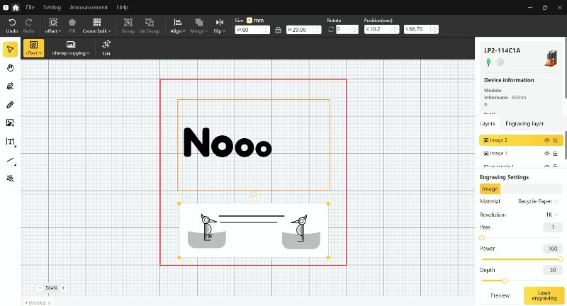 A área de trabalho do programa lembra o de um editor de imagens, com opções para fazer figuras geométricas, escrever textos, inserir imagens e até mesmo tratá-las. Não é possível fazer mais de uma cor com o LaserPecker, porém ele mexe em parâmetros do laser para conseguir gerar tons mais claros ou escuros, e assim fazer o efeito de sombra em imagens. O resultado em muitos casos é ótimo.