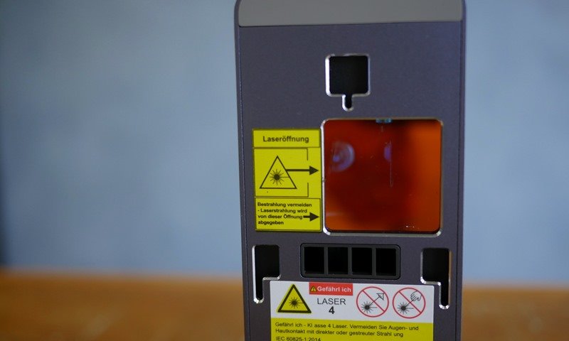 O principal item é a proteção do laser, feito de acrílico na cor laranja. A peça única encaixa facilmente no emissor do laser. Auxilia muito contra reflexos do laser e evita que partes do corpo entrem em contato durante o funcionamento.
