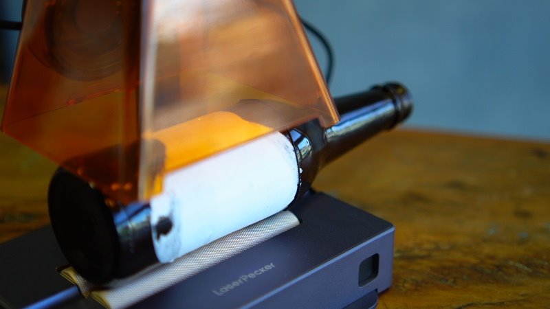 Algo importante para salientar é que como esse LaserPecker trabalha com o laser em posição fixa, o feixe atinge as áreas mais distantes em ângulo. Consequentemente, o corte próximo da área limite acaba também ficando com essa perspectiva. Isso em alguns casos pode ser limitante.