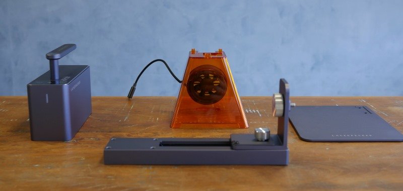 Ele é conectado ao LaserPecker usando as mesmas conexões do produto em si. Tudo segue o mesmo padrão de qualidade, acabamento e design.