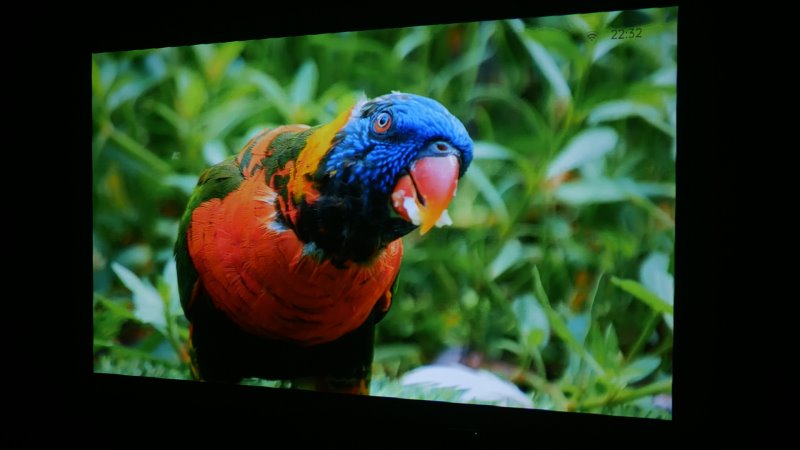 Algo que também chamou a atenção neste projetor foi a qualidade do foco na imagem como um todo. Grande parte dos projetores tem desfoque chegando próximo dos cantos da imagem e aqui isso não aconteceu. O mesmo foco obtido no centro é obtido também nos cantos.
