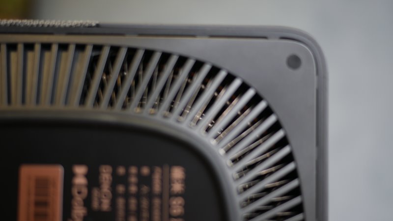 A região inferior é uma base quadrada toda emborrachada. Ao redor da borracha fizeram um estrutura de nervuras abertas para permitir o resfriamento dos componentes internos. Ideia inteligente, permite uma grande área de ventilação sem deixar o interior exposto.