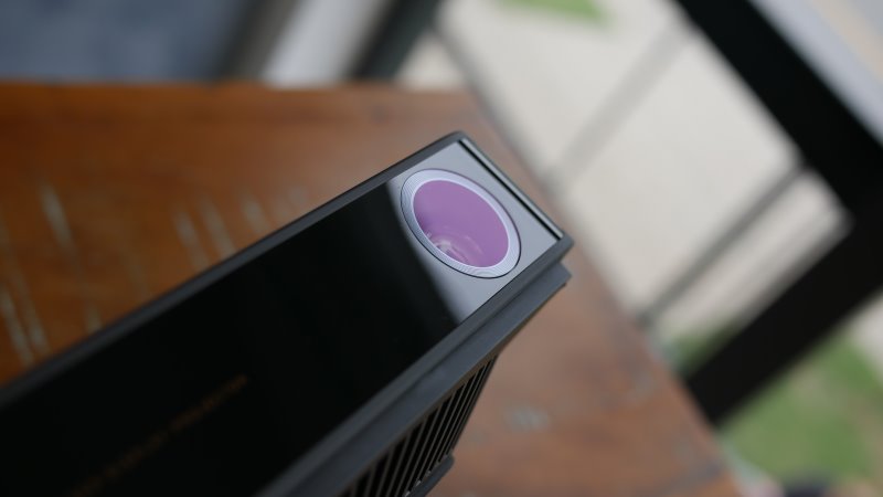 A lente é praticamente vedada e alinhada com o corpo, ou seja, um pano umido irá limpar por completo. Não apresentou áreas para acúmulo de pó na área interna da lente. É um grande benefício perante os diversos projetores LED que testamos.