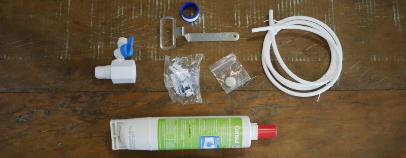 A unidade vem com todos os materiais necessários para a instalação. Registro para redução do diâmetro da mangueira de entrada, veda rosca, mangueira atóxica para conectar o filtro na rede, redutor de pressão (na ocasião da casa estar com a tubulação acima de 400 kPa) e também um kit de parafusos e buchas caso deseje deixar o purificador suspenso na parede. Aliás, para completar o pacote de material, é incluído um gabarito para facilitar a marcação dos furos na parede.