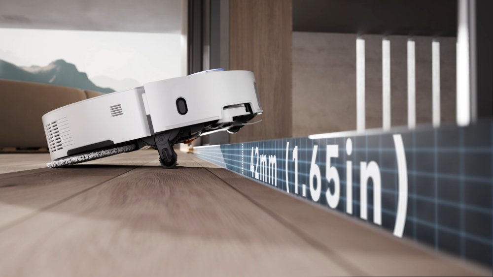 Dessa forma, consegue passar por baixo de mais mesas, armários, camas… e assim limpar regiões adicionais que outros robôs não conseguem.