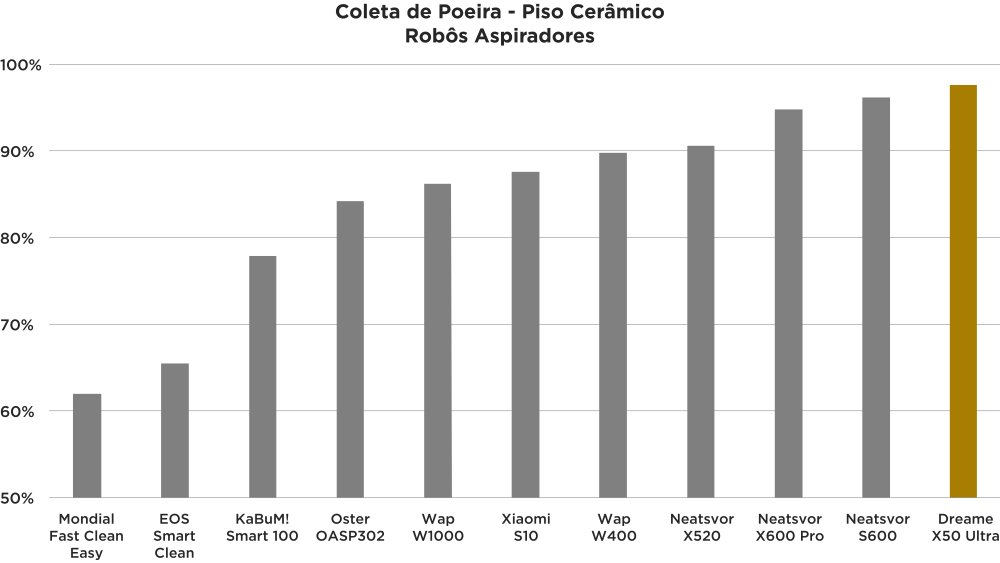 Tanto a coleta de poeira quanto de partículas registrou os mais altos resultados entre os robôs aspiradores avaliados.