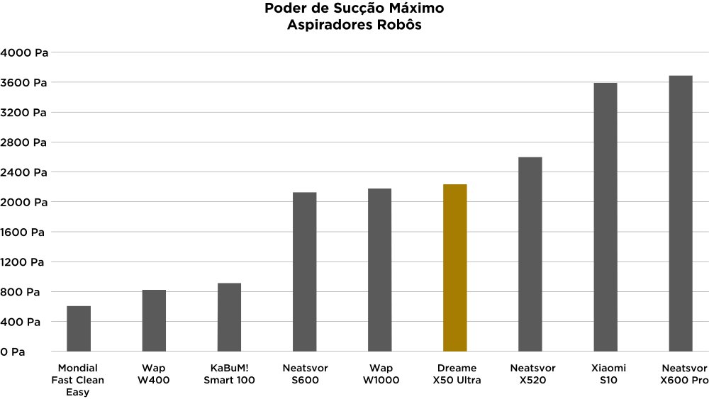 Desses 20.000 Pa anunciados, o robô aspirador Dreame X50 Ultra produziu cerca de 2.460 Pa. Uma diminuição de 87,7% do valor anunciado. Não ficou claro como esses números de marketing são, mas não estão condizentes com a estrutura final do robô.