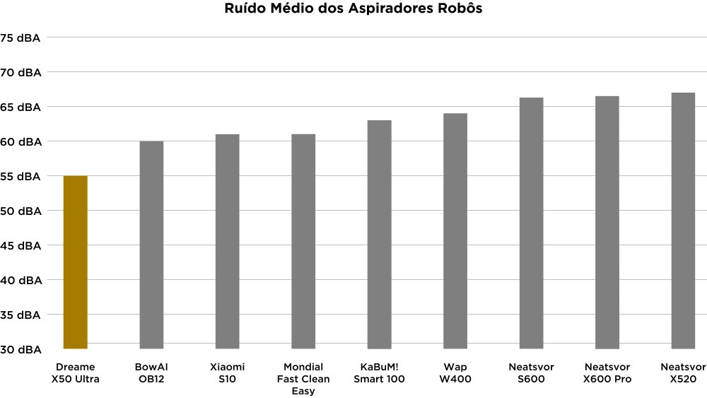 As forças maiores marcam 64 dBA, próximo que outros robôs aspiradores marcam na força média.