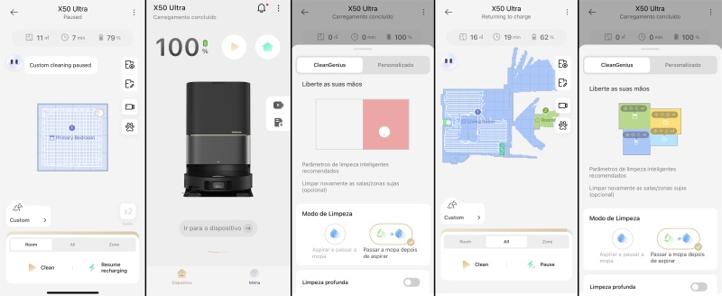 Mesmo em ambientes com obstáculos, sua movimentação é precisa e bem justa aos obstáculos. A única exceção são áreas com fios, tecidos e bases inclinadas. O X50 Ultra desvia dos entornos desses obstáculos que são relatados no aplicativo.