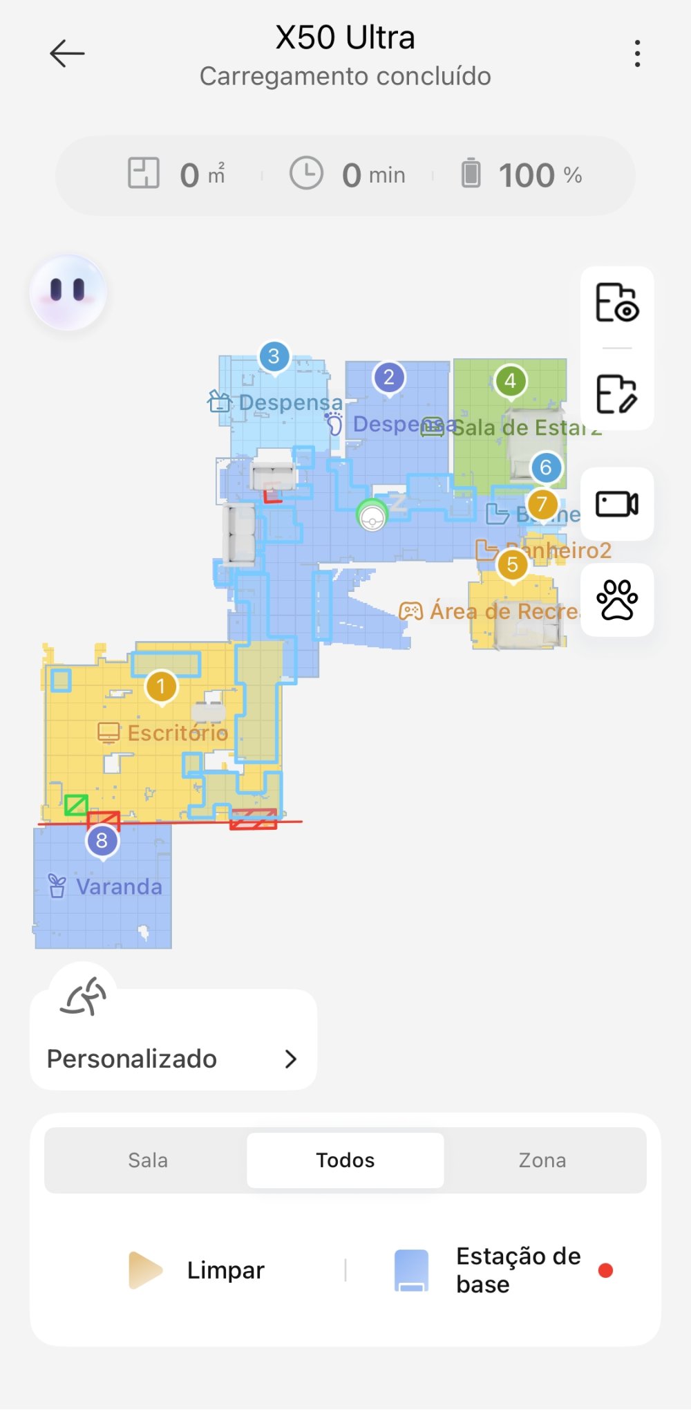 Para ter o melhor resultado, deixe um espaço separado para a base, sem mudá-la de local. E se for mudar, mude o robô junto e peça um novo Mapeamento Rápido. Assim garante que nunca terá problemas, pois a base é vital para todas as funções do Dreame X50 Ultra.