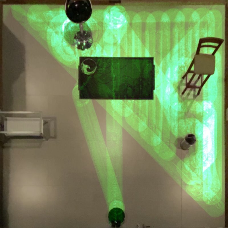 A definição do mapeamento é realmente alta, mesmo obstáculos pequenos como pequenas lixeiras e pés de cadeiras são reconhecidos individualmente. Durante qualquer percurso do robô as informações são atualizadas, captando mudanças no ambiente.
