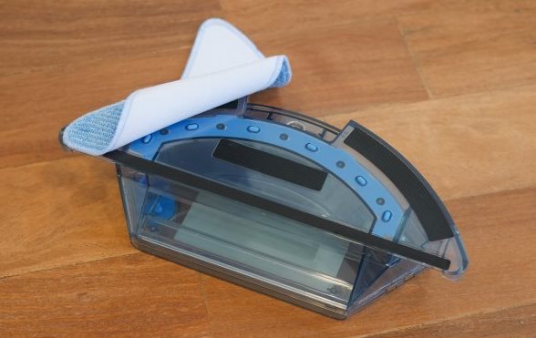 O pano de microfibra cobre uma boa parcela do diâmetro do robô, mas próximo das paredes há regiões em que não chega tão bem. De maneira parecida, a remoção de manchas nos cantos é prejudicada, praticamente não funciona. No meio da sala, ele é capaz de remover após passar algumas vezes. Com o comportamento zig-zag, não é incomum que ele limpe o centro do ambiente.