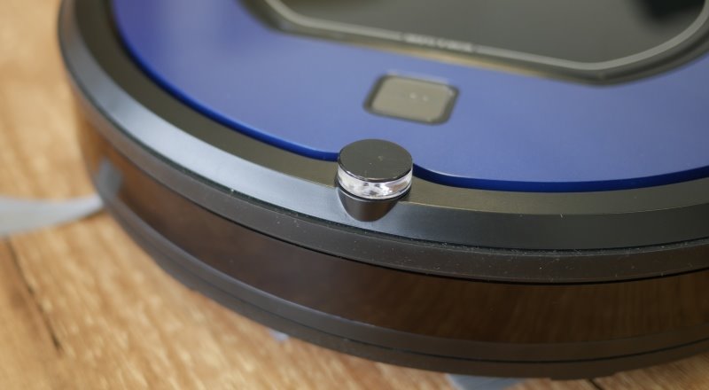 O mesmo receptor infravermelho se repete no topo do aspirador. Essa é uma das diferenças mais perceptíveis entre o modelo da Midea, que o posiciona na traseira. A mudança na localização facilita os comandos do controle remoto.