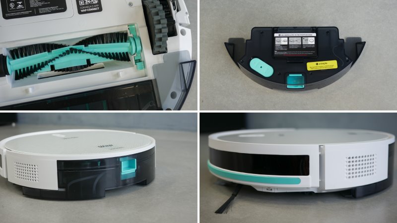 Os locais onde deve haver maior acúmulo de sujeira são na parte de baixo do robô. Especialmente nos entornos da escova rotativa, do reservatório e das rodas. É bom retirar as peças para limpar de tempos em tempos. Especialmente em torno do reservatório, há muitas estrias que acumulam pó.