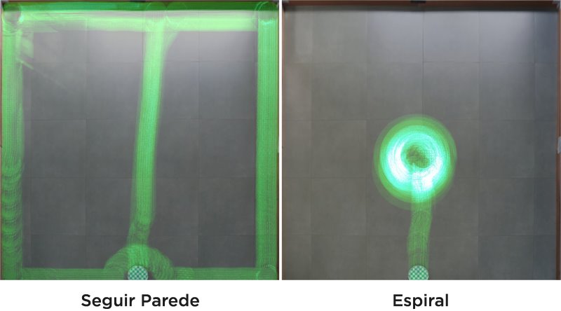 Seguir Parede e Espiral só ocorrem caso requeridas pelo usuário. Seguir Paredes o faz percorrer o perímetro do ambiente. Espiral faz uma limpeza focal. Ambos possuem seus usos situacionais.