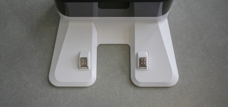 Essa base é um tanto grande, especialmente quando comparada ao modelo W400. São 18,9 cm de largura e 14,1 cm de profundidade, com 7,3 cm de altura. Lembrando que é preciso deixar certo espaço livre no entorno da base.