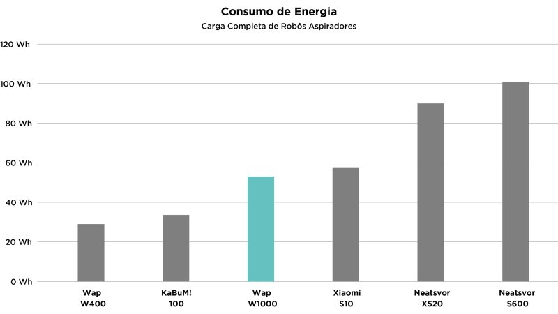 Pensando no consumo de energia, o Wap W1000 consome cerca de 53 Wh para se carregar por completo. É um valor baixo, vai precisar carregar o mês inteiro pra somar próximo de R$1,00 na conta de luz.