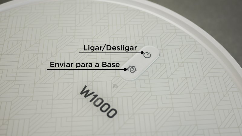 Também é no topo que encontramos a escrita da marca, e dois botões para Ligar/Desligar ou Enviar para a Base.