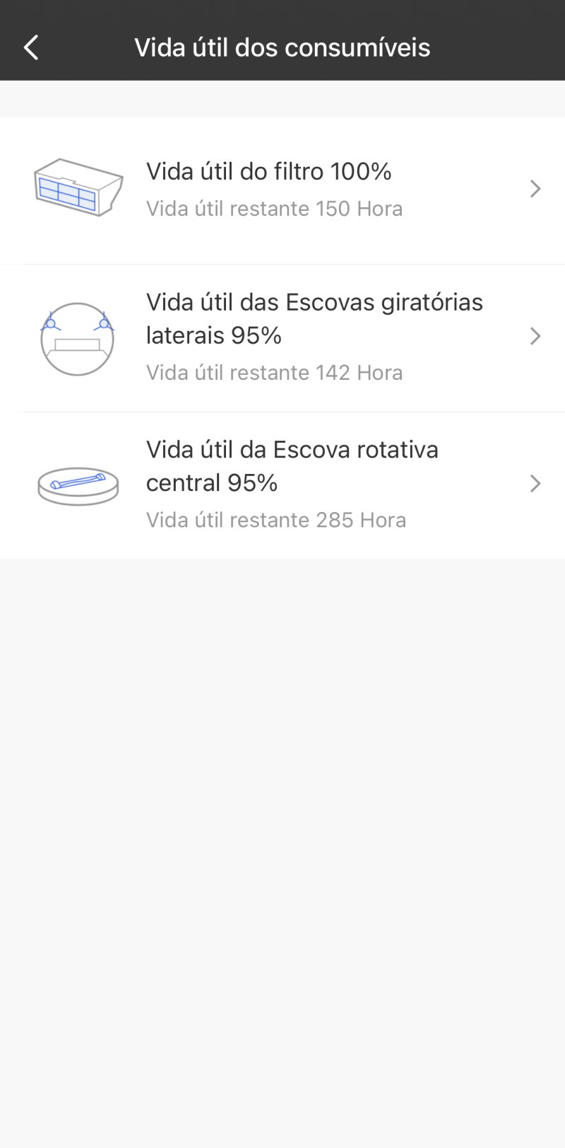 - acompanhar Porcentagem da Bateria, Tempo de Limpeza e Área Limpa