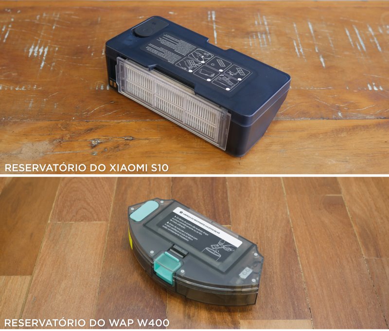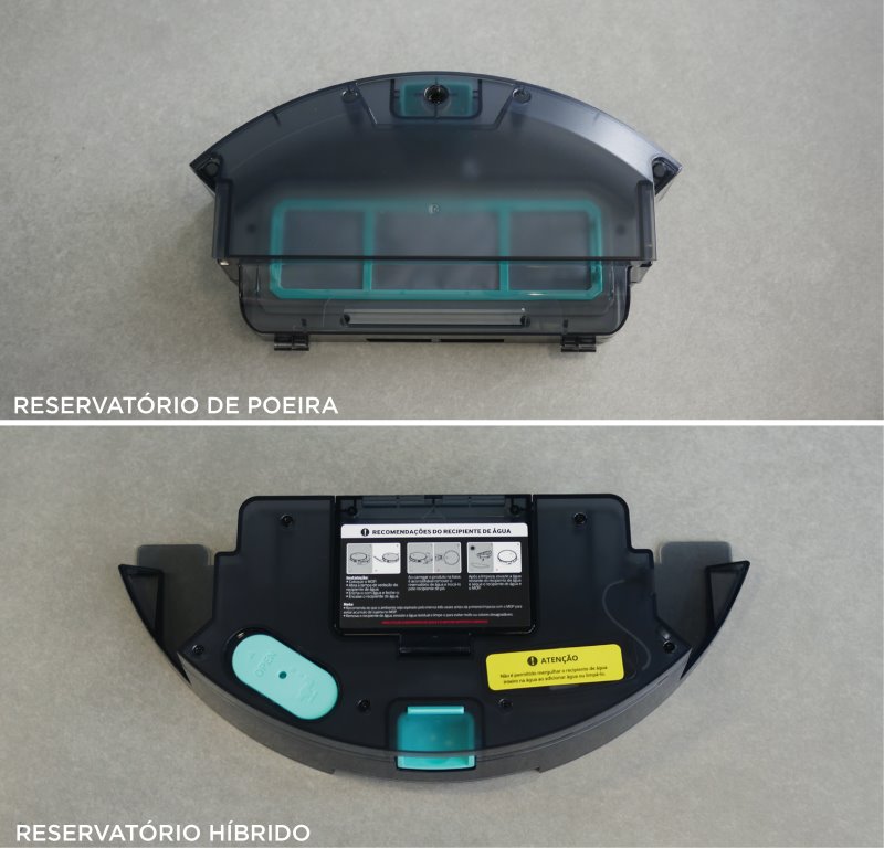 No reservatório duplo, poderiam ter feito uma divisão que favorece mais o reservatório de poeira, porém a busca por robôs que passam pano é alta. Comentamos sobre sua capacidade de passar pano mais adiante.