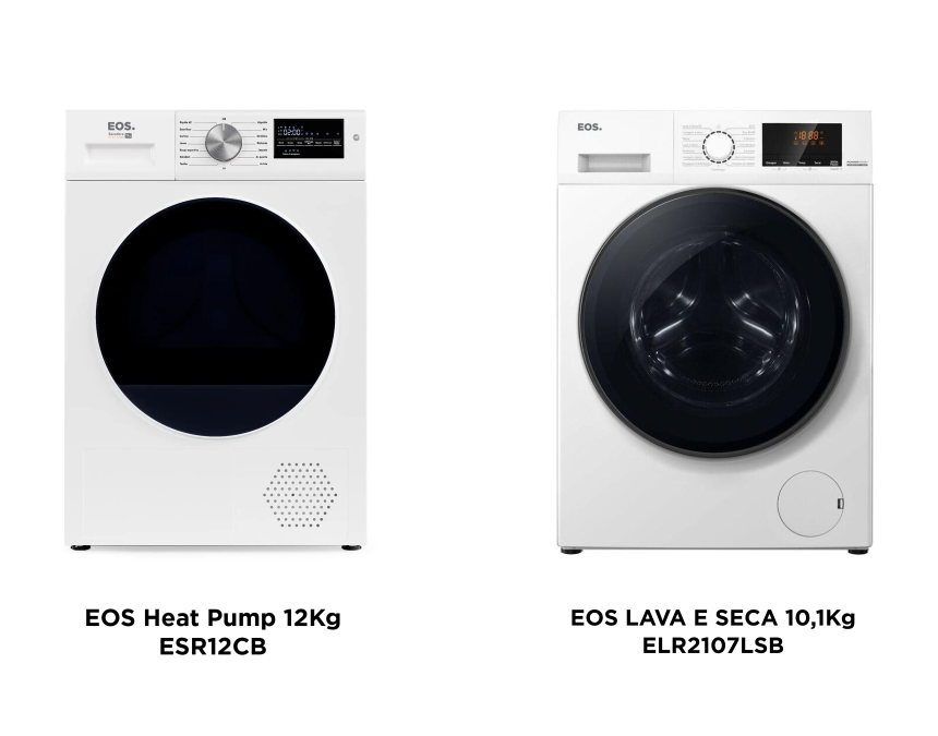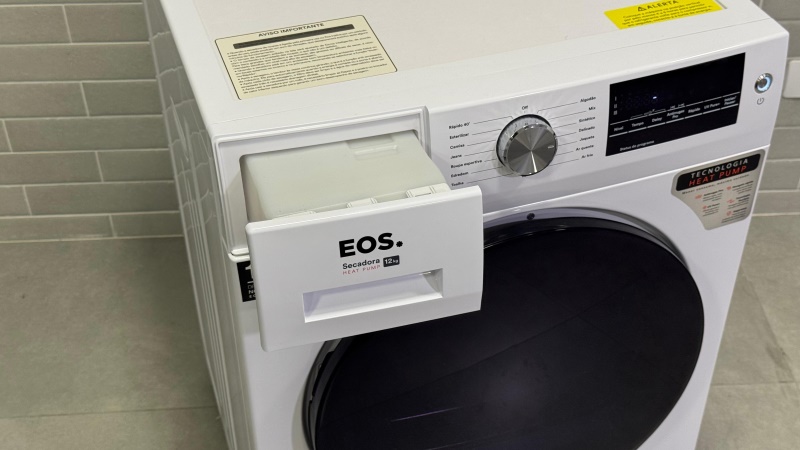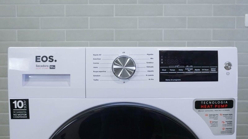 Surpreendentemente, entre todas as marcas, foi a EOS que entrou nesse mercado, mesmo tendo menos de 3 anos de produtos na área de lavanderia! Além disso, essa secadora de roupas EOS é vendida a um preço não próximo de uma secadora comum, com ventilação tradicional. É um valor muito atrativo para uma secadora heat pump!
