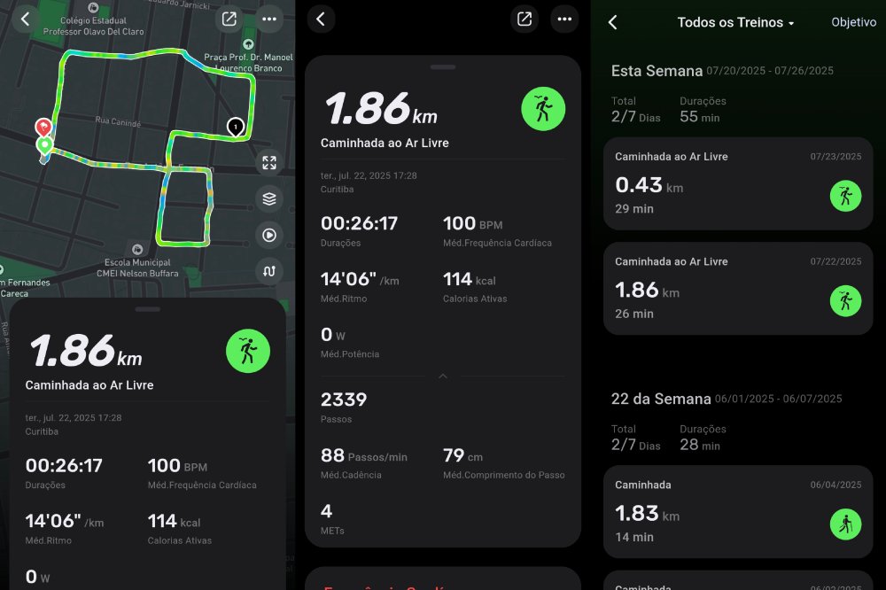 Através do GPS, é contabilizado seu ritmo (minutos por quilômetro), distância percorrida e até se forma um mapa que pode ser visualizado na tela do smartwatch ou no aplicativo Fitbeing, caso tenha feito a conexão. Através do app, é possível se conectar ao Strava.