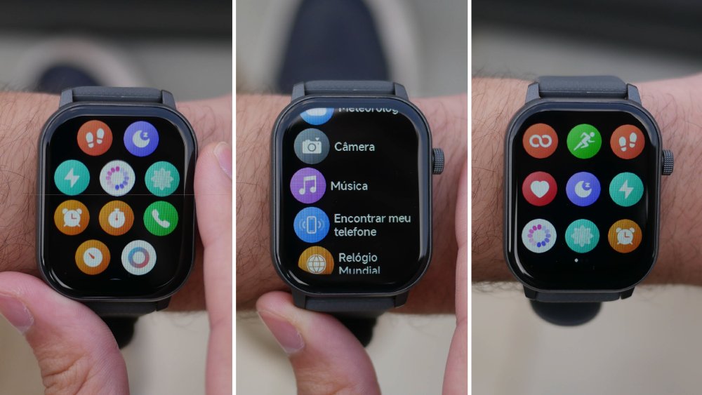 Algo digno de nota é o uso da coroa, que permanece intuitivo durante todo o uso do relógio Zeblaze. Ao apertá-la, acende a tela do smartwatch (se ele estiver apagado). Pressionar novamente abre o menu. Se estiver em alguma função, a coroa retorna à página anterior.