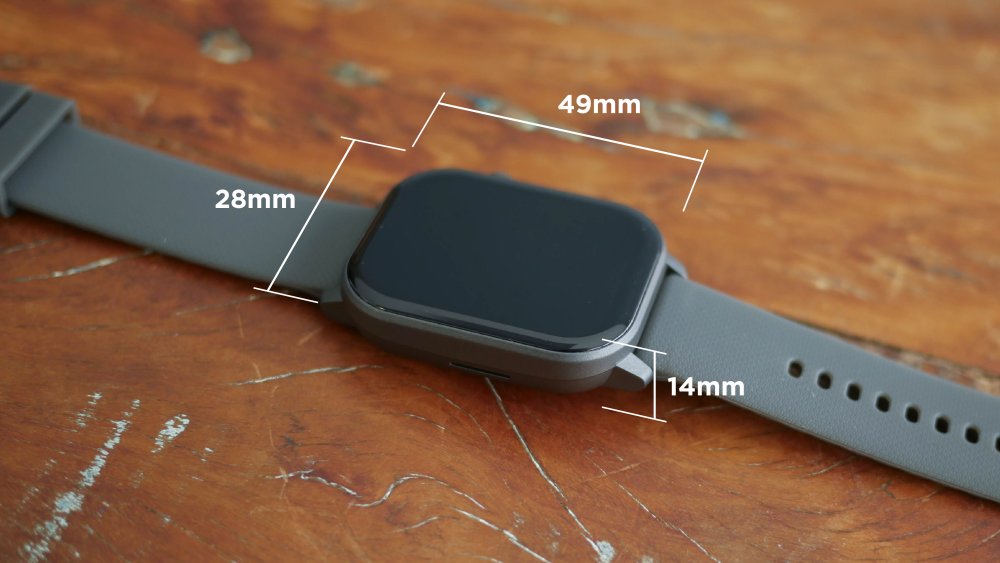 Tem a espessura de 14 milímetros, com 39 milímetros de largura (desconsiderando a coroa) e 49 milímetros de comprimento. Para quem não gosta daqueles modelos estreitos, diria que o smartwatch Zeblaze está com um bom tamanho.