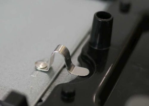 Neste quesito a Britânia se deu bem com este modelo. O produto é simples e não tem cantos na parte superior para acumular sujeira. O alçapão na base do produto pode ser aberto facilmente, tornando ela uma torradeira que pode ser facilmente limpa no dia a dia, possibilitando também uma limpeza completa. Basta apertar uma chapinha metálica que age como mola na parte inferior do produto (foto a seguir). O único porém é que para limpá-la o produto ainda precisa ser virado de ponta cabeça, diferente dos produtos que tem uma bandeja removível.