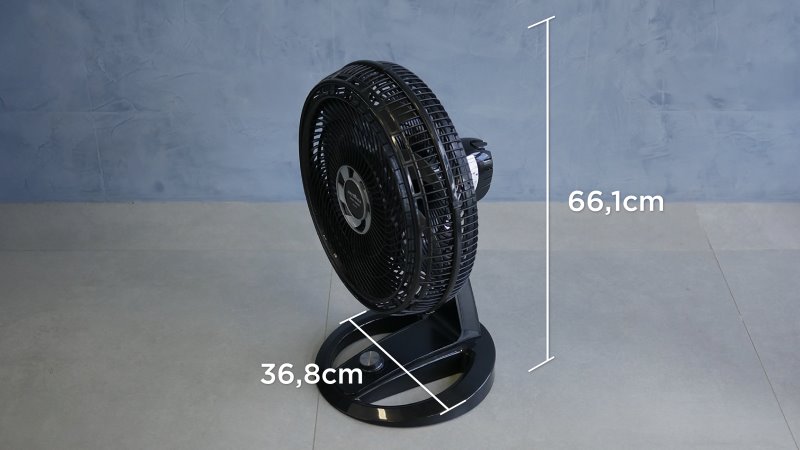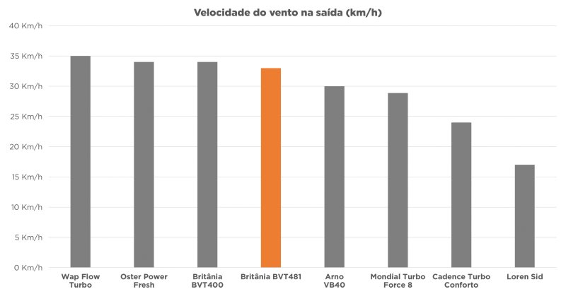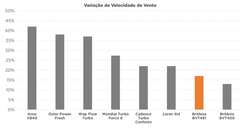 O BVT481 entrega uma vazão de 1,3 m³/s a uma velocidade de 33 km/h. São ótimos valores comparados a outros ventiladores já testados, tanto para vazão alta e a velocidade máxima de vento.