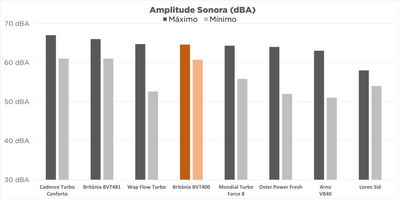 Seu ruído é alto atingindo um máximo de 66 dBA, além de possuir um leve som agudo de assobio durante seu funcionamento. Na velocidade mínima também atinge um valor alto com 61 dBA e o assobio continua presente.