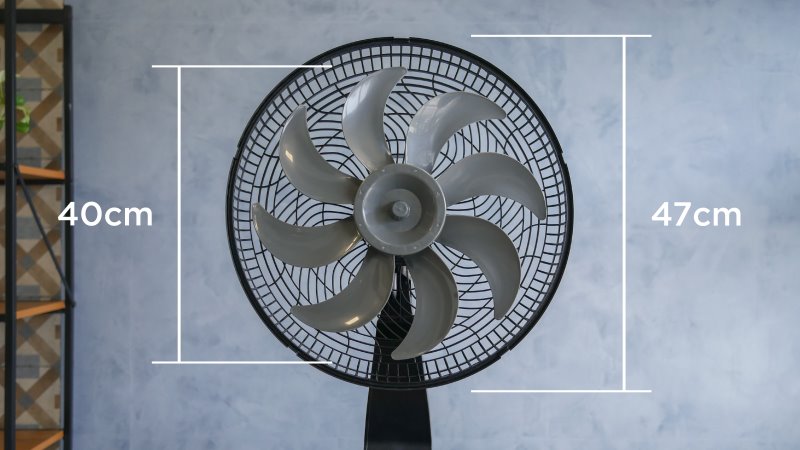 Este é um modelo com hélice de 40 cm e 8 pás, no entanto é possível encontrar o mesmo produto com uma hélice de 10 pás.