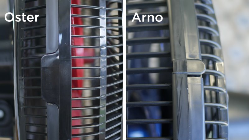 A Oster está somente com 2 modelos de ventiladores, e não é difícil perceber as similaridades entre eles. Tanto o Oster Power Fresh quanto o Oster Super Breeze tem hélice de 40cm de diâmetro, 6 pás e versões de coluna, além das de mesa. Analisando esteticamente, o corpo de ambos é o mesmo, com a diferença da cor da hélice e o anel interior da grade. A potência declarada dos modelos também é diferente, 126W para o Super Breeze, e 140W para este Power Fresh.