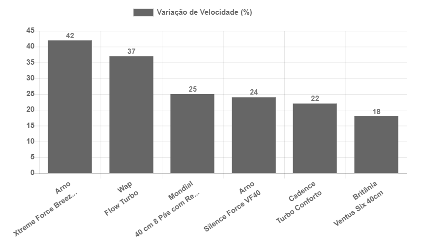 A variação da velocidade mínima para a máxima também agrada, atingindo cerca de 37% de variação.