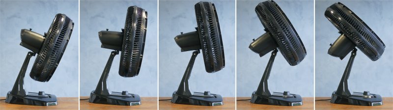 Quanto ao ajuste máximo a cabeça do ventilador pode ser angulada em 45° para cima o que é bom para a configuração normal porém pode deixar a desejar um pouco quando utilizado na configuração de parede, onde impossibilidade de deixar de um modo onde o vento fique mais indireto.