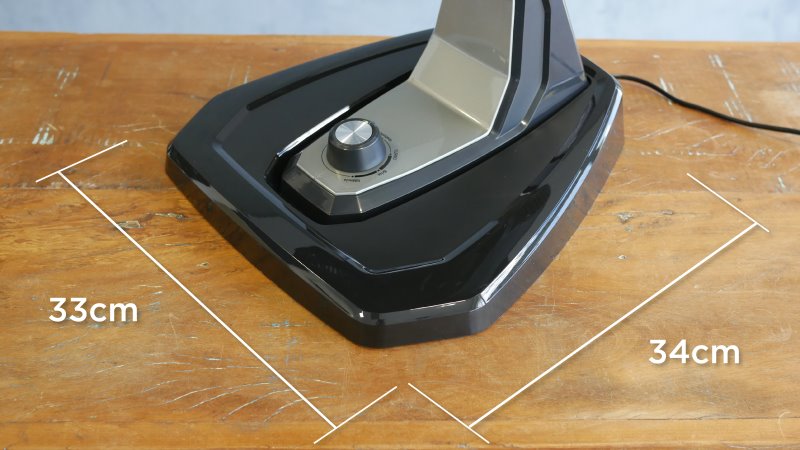 A base do Flow Turbo possui 33 cm de largura por 34 cm de profundidade e com um desenho mais quadrado, que mescla o acabamento polido com alguns pontos de acabamento fosco.